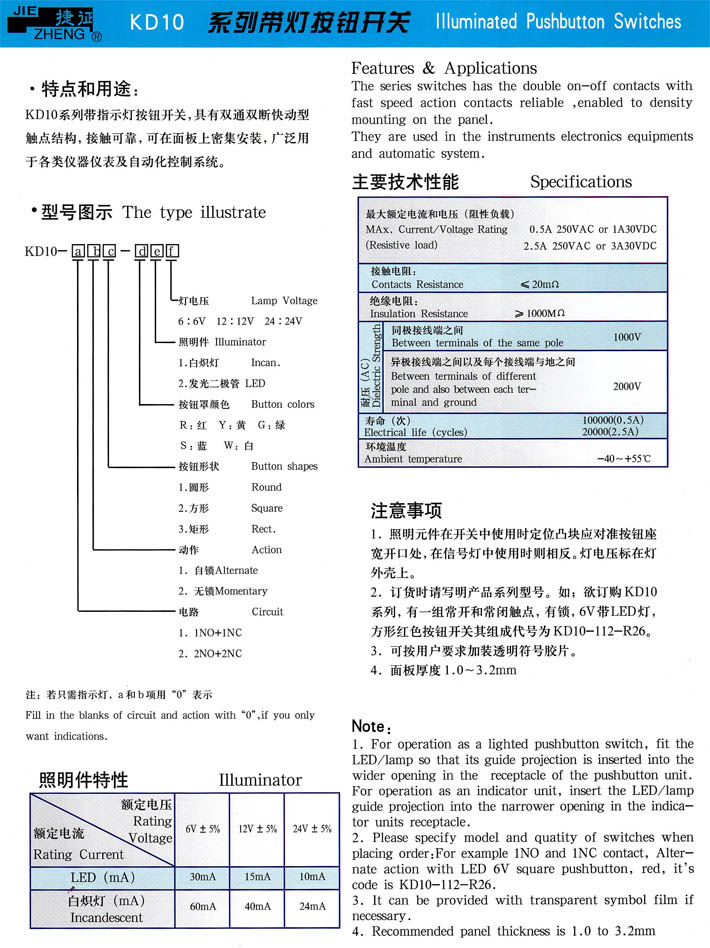 產(chǎn)品型號:KD10系列帶燈按鈕開關(guān)