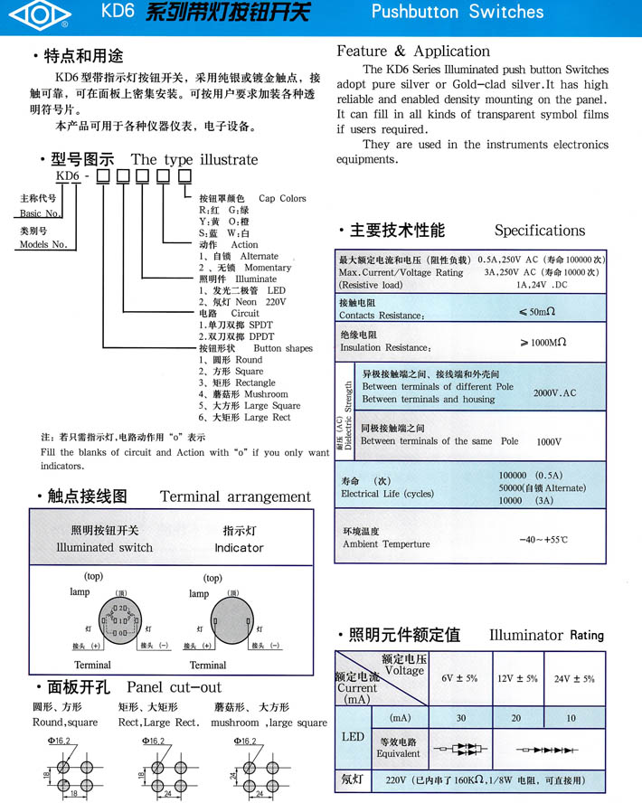 產(chǎn)品型號(hào):KD6系列帶燈按鈕開關(guān)